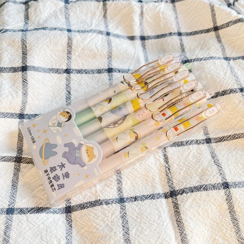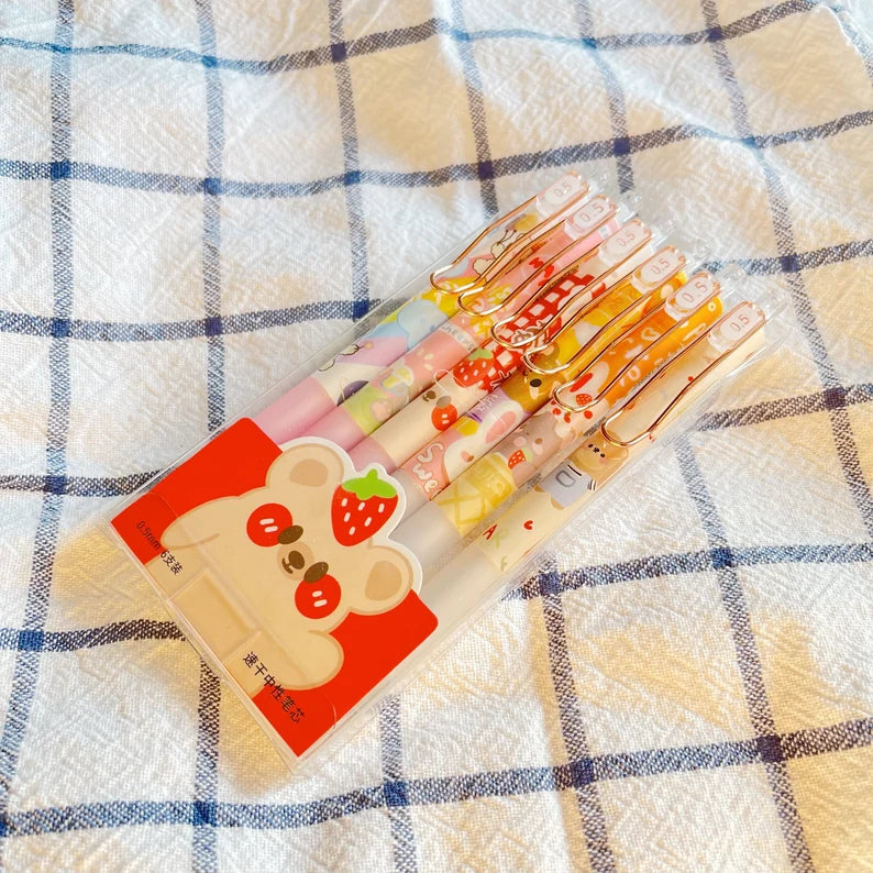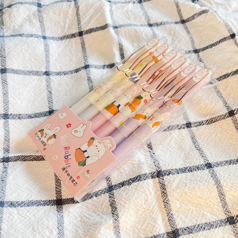 FEILI Set of 6 Rose Gold Clip gel pen set/ Cute Gel Pen 0.5 mm Black Ink