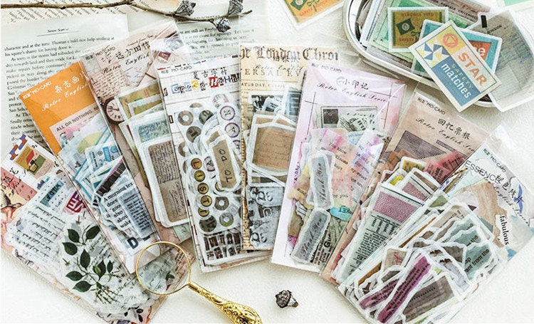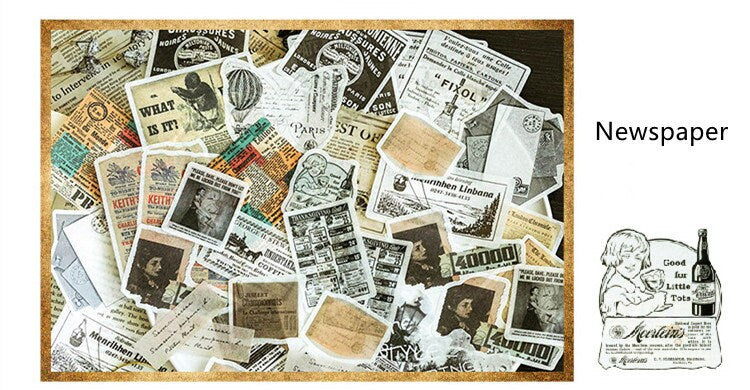 [Free Shipping] 60/75 PCS Retro Junk Journal Ephemera Washi Stickers