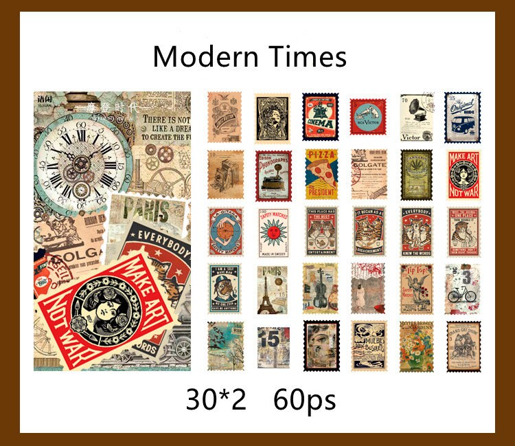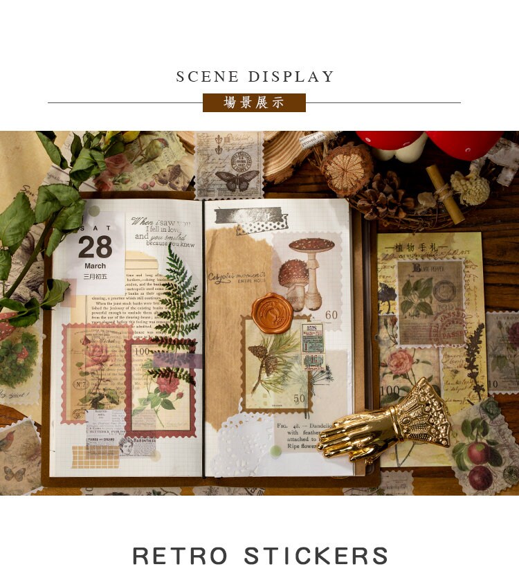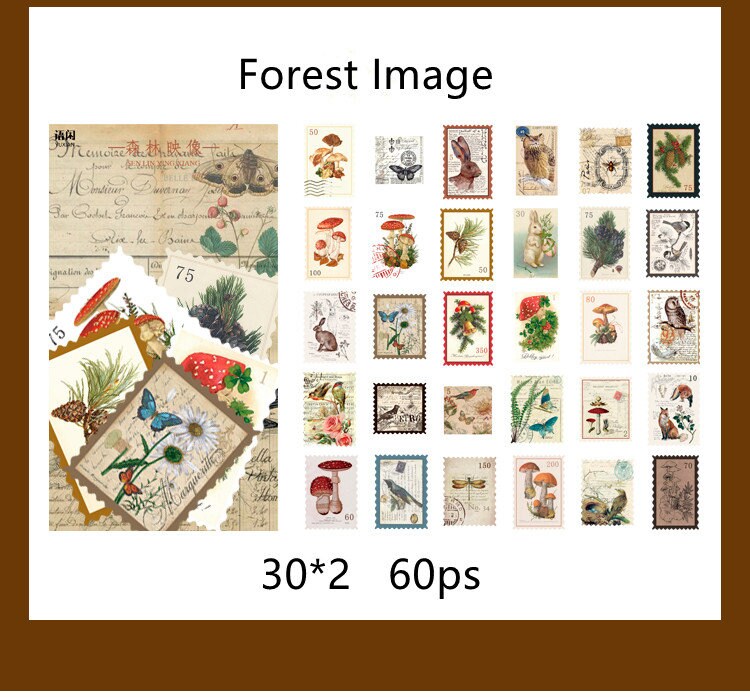 [Free shipping ]60/180 pcs Retro style stickers journaling stickers plant/forest/20s poster 30 patterns *2 pieces
