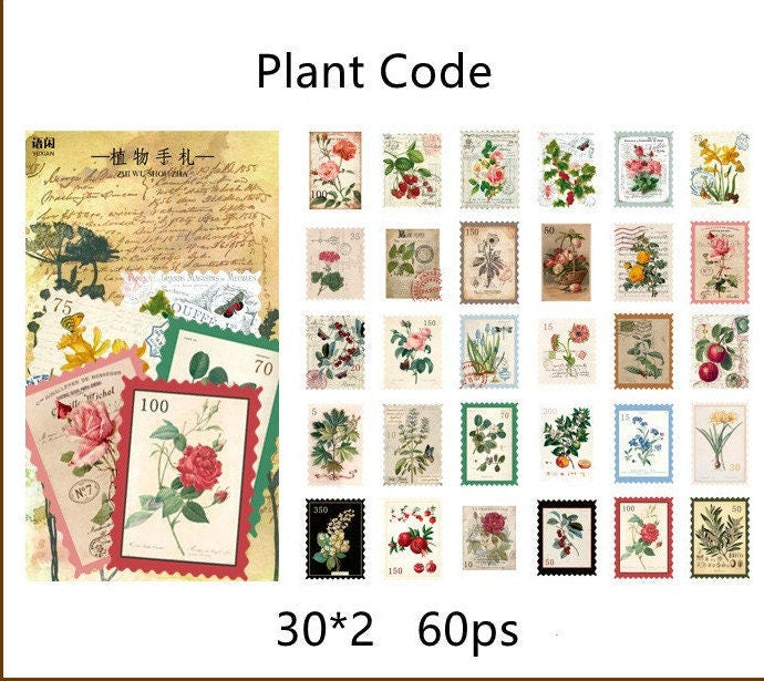 60/180 pcs Retro style stickers journaling stickers plant/forest/20s poster