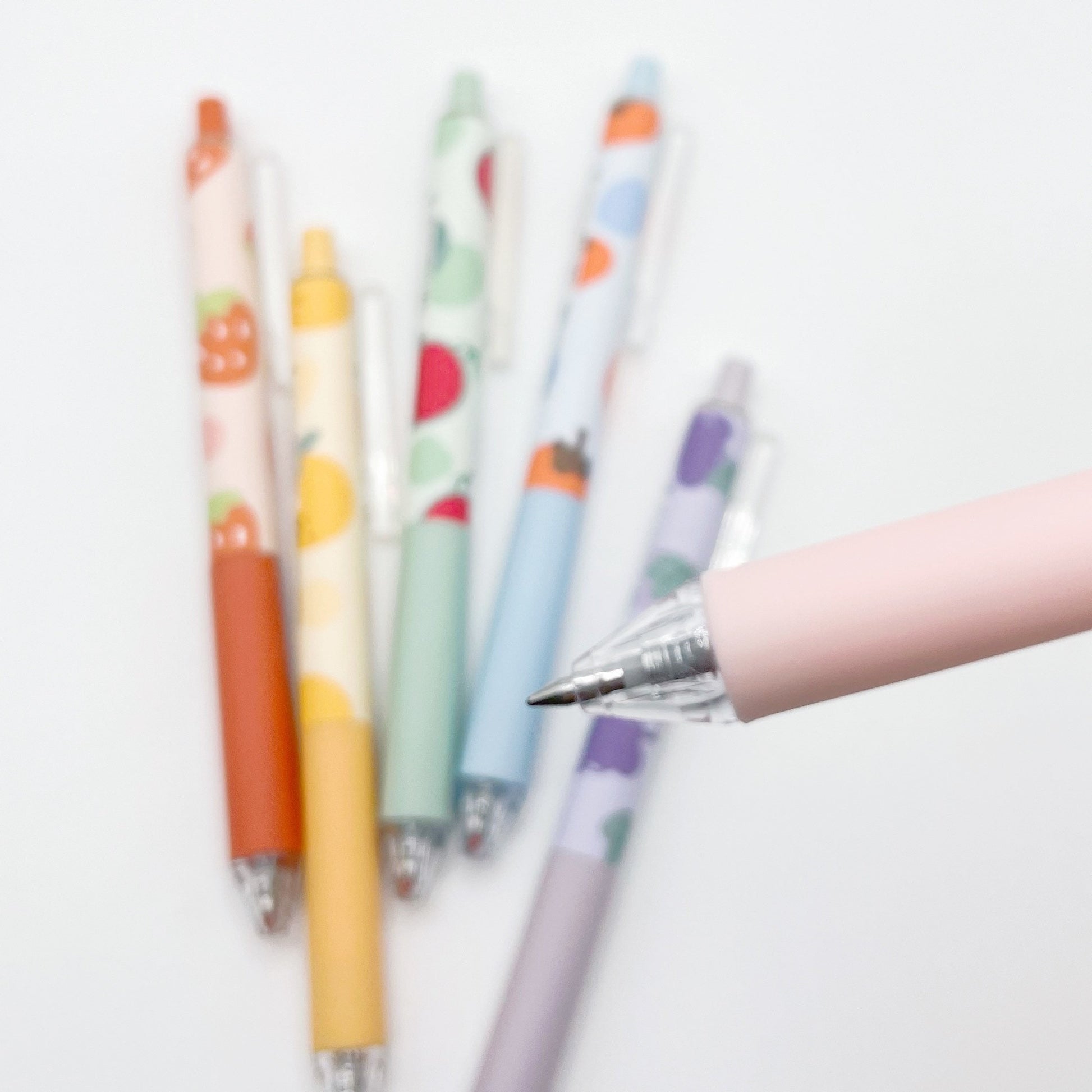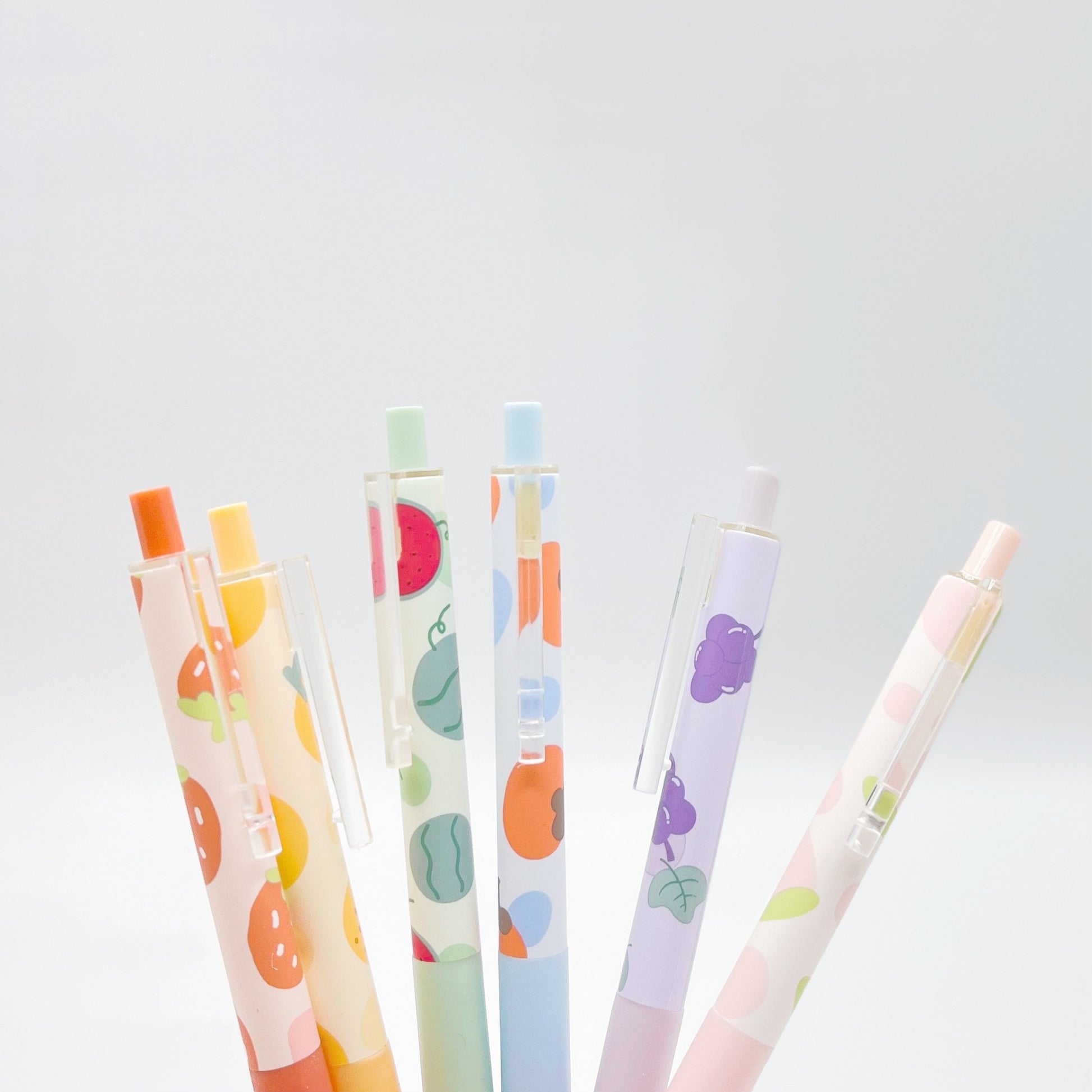 JiWuShe Set of 6 Fruity Print Gel pens 0.5mm Black Ink, aesthetic gel pen, aesthetic stationery, cute gel pen, cute stationery