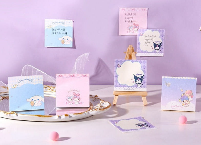 4 characters per book ;My Melody, Little Twin Star, Cinnamoroll, Kuromi