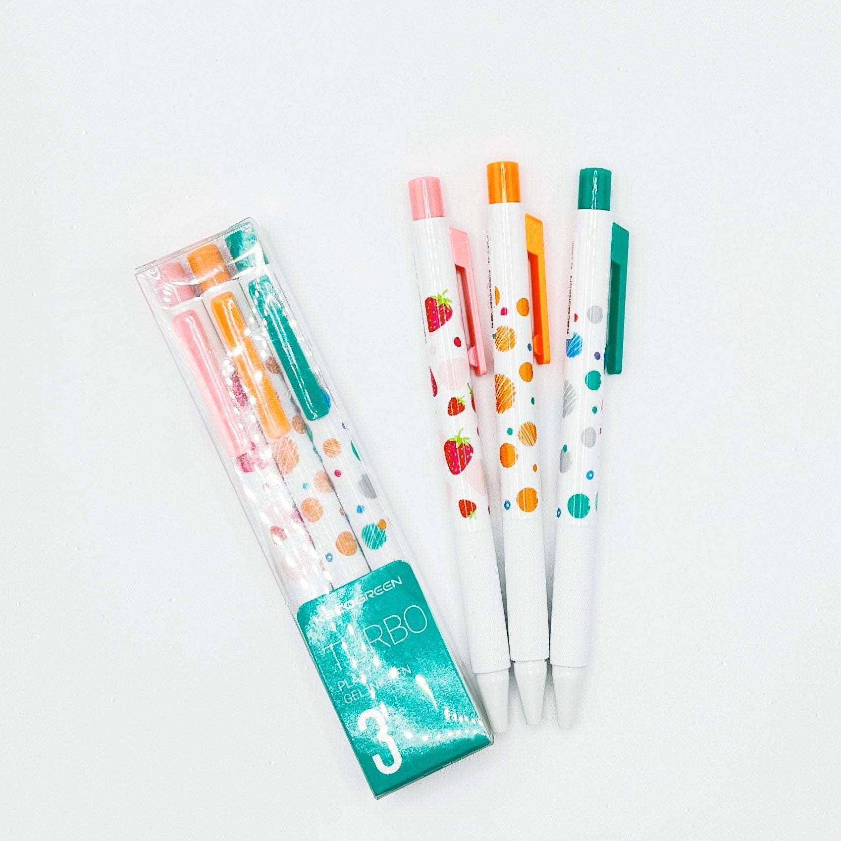 Kaco Set of 3 Turbo retractable Fruity Print gel pens