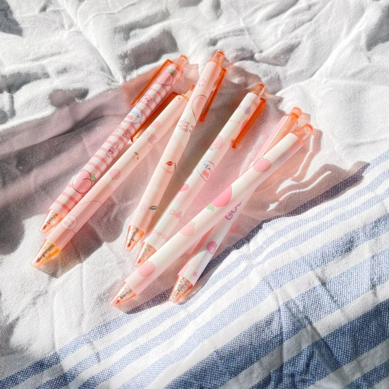 Set of 6 Peach Print Gel Pen Set /Cute gel pen set 0.5 mm Black Ink