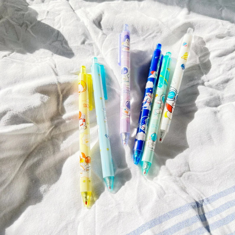 Set of 6 Pieces Astronaut print Gel pen/ Cute gel pen 0.5mm Black Ink