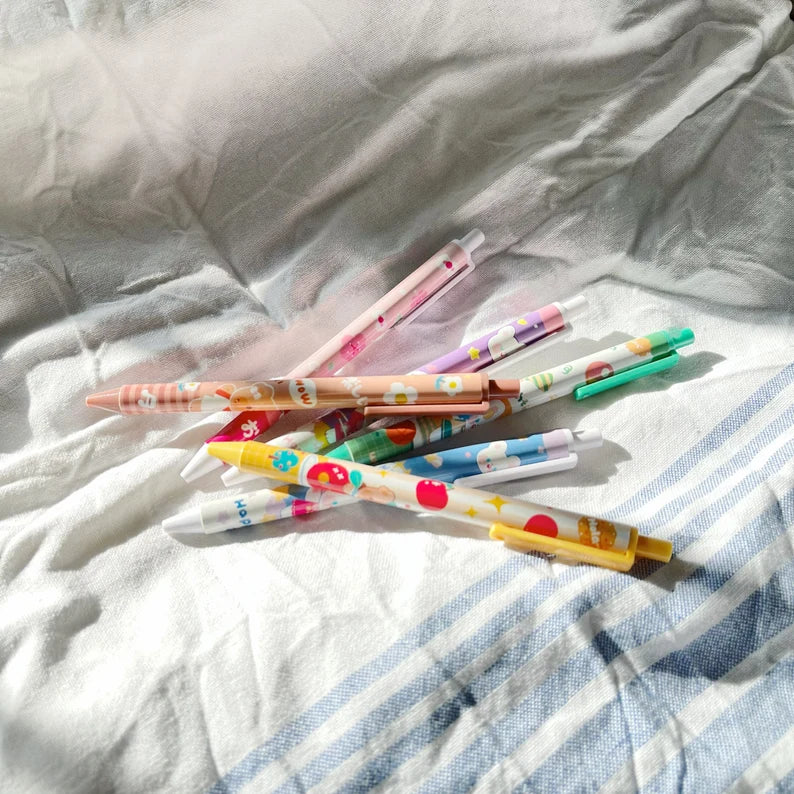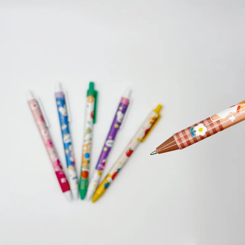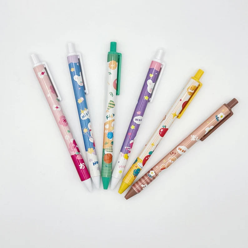 Toffee Bunny & Cheese Set of 6 Bear Cute Bunny Bear Gel Pen/ Fine Tip Gel Pen 0.5 mm Black Ink
